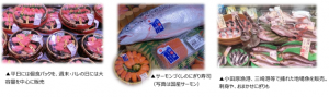 鮮魚コーナーでは、生ネタを使用した鮮度感のある寿司や近海(小田原漁港、三崎港等)で獲れた地場魚を販売する。お魚屋さんのおつまみコーナーでは、少しずつが嬉しい3種セットを用意する。