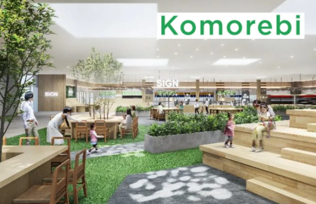 商業施設は「Komorebi(コモレビ)」「Hidamari(ヒダマリ)」「Soyokaze(ソヨカゼ)」の3つの“憩いの場”を設け、イン+アウトショップ全27店舗で構成する。