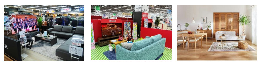 須坂店では「リユース家電」や大塚家具の家具・インテリア、おもちゃコーナーには話題のゲームやおもちゃを見て、触れて、遊びながら選べる体験ブースなども用意して展開する。