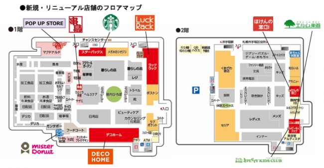 専門店ゾーンの改装により、新たに出店したテナントではゲオグループのオフプライスフォーマットの「LuckRack(ラックラック)」が北海道初出店する。さまざまな理由で販売時期を過ぎた商品をパートナー企業の協力のもと買取り、定価の30~90%オフで販売する。
