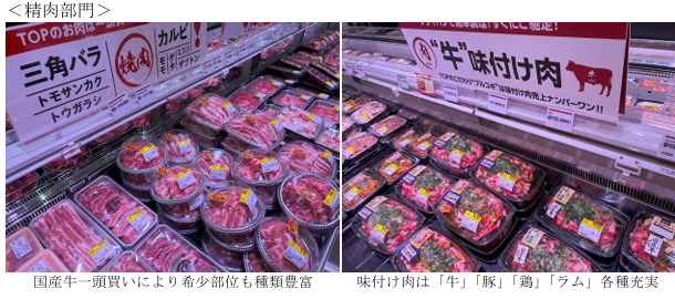 「生鮮市場TOP!松戸新田店」は、精肉売場はリュウガンや国産牛の希少部位など、生鮮市場TOP!独自の商品を品揃えする。