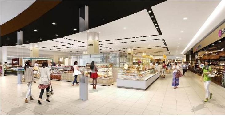 1つは、食品フロア。「“つくること”“食べること”など“食”を楽しむためのフードマルシェ」をコンセプトに都市型のライフスタイル提案型フロアと24の専門店が融合した“食”の一大ゾーンを構築する。