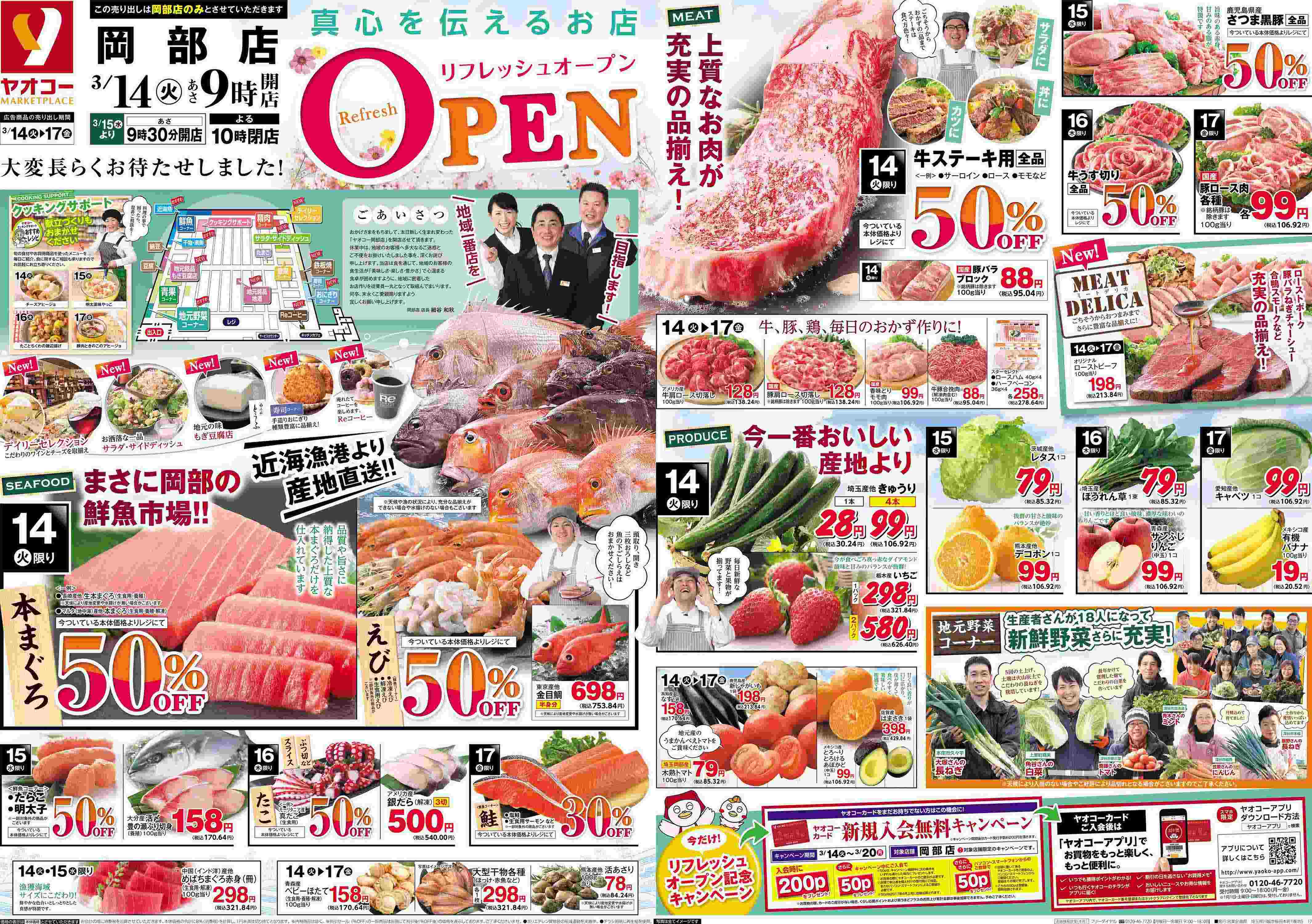 ヤオコーニュース|3月14日(火)に岡部店(515坪)改装オープン