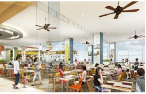 2階のフードコートとも連動する外部のテラス席は「サンセットテラス」と名称改変し、夕日や大阪湾の眺望が楽しめるスペースに生まれ変わる。(4月下旬オープン予定)