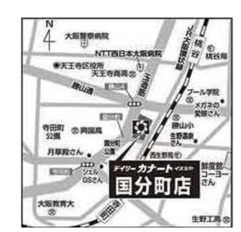 同店はJR大阪環状線の寺田駅から徒歩5分。寺田町駅と桃谷駅の中間という立地。1km北にはデイリーカナート細工谷店、2km北にはデイリーカナート玉造店があり、ドミナントを形成している。