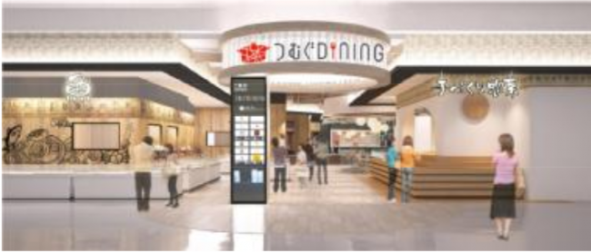第2期は、核店舗「イオン木曽川店」の大規模リニューアルをはじめ、イオン木曽川店1階食品フロアと隣接したサウスコート周辺に新たな食のコンセプトゾーン「つむぐDINING」を設ける。