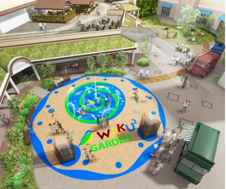 1階のメインエントランス「WAKUWAKUガーデン」の横には屋外庭園WAKUWAKUガーデンを新設する。全面に人工芝を敷設し、噴水やミストの出る“あそべる噴水”を設置し、ファミリーで楽しめる空間にリフレッシュオープンする。さらに、休日には屋外でのイベントを開催する。