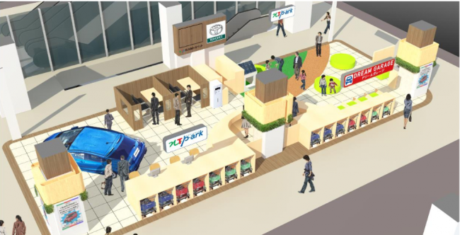 また、この豊田市の土地柄で、名古屋トヨペットが運営する自動車販売ショップ「NTP-ark(エヌティーパーク)」が店内に出店。カーライフを提案するが、特に“トヨタ2000GT”型の子ども用カートの貸し出しや、「子ども安全免許証」の発行などを行って、子どもをターゲットにする。