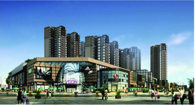 大朗鎮は東莞市の南に位置し、ウールセーターの生産地として知られている。 東莞市の主要都市として近年開発が進むのが恵州市だが、この地域を結ぶのが今年末に全線開通予定のライトレールである。このショッピングセンターはライトレールの大朗駅と直結している。地域的には大朗鎮の北東部に位置する商業集積だが、広域からもアクセスが便利な立地で、さらなる発展が期待される。
