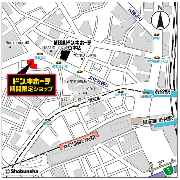 渋谷駅から徒歩5分。MEGAドン・キホーテ渋谷本店と同様、文化村通り沿いに立地する。