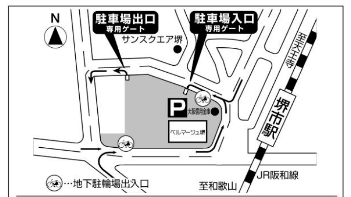 同店は、JR阪和線「堺市」駅西側の都市再開発地区にある複合施設ベルマージュ堺内に出店している。