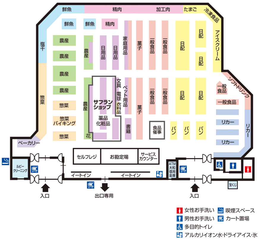 住居関連売場では、美容と健康をテーマに「サフランショップ」を展開し、幅広い顧客ニーズに応え、薬品・化粧品・日用品を集合展開する。またテナントとしてクリーニング店が入居する。