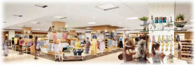 建物は地下1階地上4階建てで、直営面積は約9650㎡(約4924坪)、専門店は約5030㎡(約1524坪)。