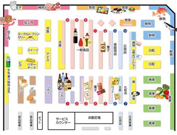 惣菜の店内加工米飯には、静岡県産コシヒカリを使用する。佃煮コーナーでは浜松(マツダ食品)の「大葉串3SKU」、「浜松湖のり佃煮」といった地元メーカー商品を、また全国1、2位の消費量を誇る餃子「浜松餃子」を販売する。