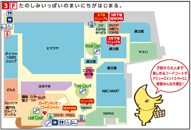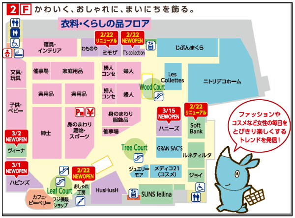新規テナントは、2月22日には、婦人服「T’s collection」、リフォームショップ「おしゃれ工房」がオープンする。