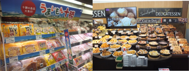 水産は、釧路市や十勝沖で水揚げされた魚介類、地元広尾町で加工した「ほっけ開き」「宗八がれい」などの干物を展開する。刺身コーナーでは、まぐろやサーモンを中心に、1人前から家族で楽しめる盛合せまで、家族構成に応じた品揃えをする。