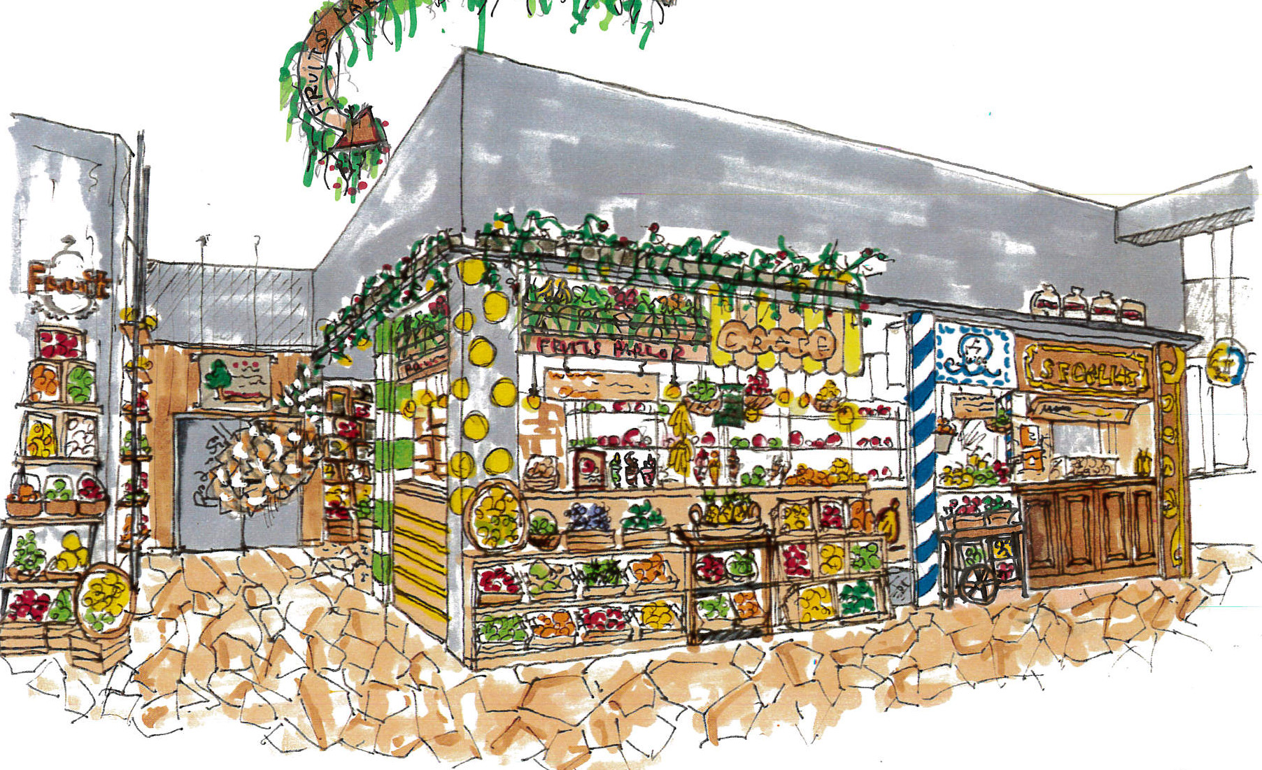 毎日の生鮮食材を提供するほか、サラダバーや、魚のプロが握る寿司、石釜で焼き上げるハンバーグや熟成肉ステーキが味わえるダイニングを設ける。店内で購入した食材を持ち込み、BBQが楽しめるセルフコーナーが併設されている。