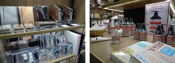 店内の文具や雑貨は、TSUTAYAのプライベート商品である文具ブランド「HEDERA(ヘデラ)」と雑貨ブランド「Lelierre(ルリエル)」や、蔦屋書店限定のPB雑貨、CCCグループのオリジナルナチュラルコスメ「Cu apothecary」など、ここでしか手に入らない文具雑貨を取り揃えている。