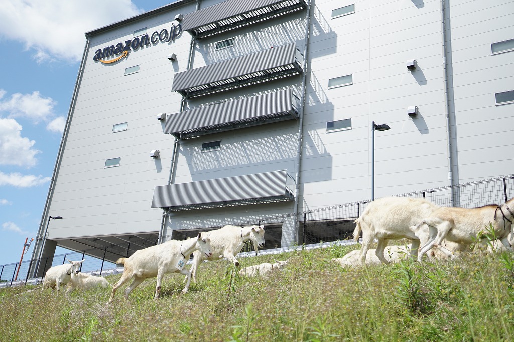 アマゾンジャパン(東京都目黒区、ジャスパー・チャン社長)は、5月22日(火)から、アマゾン多治見フルフィルメントセンター(FC)で、農業生産法人(有)FRUSIC(岐阜県高山市)が飼育しているヤギによる「エコ除草」をスタートした。10月末までの毎週火曜日9時から15時に行う予定で、ヤギたちは敷地内の約3750㎡を除草する。