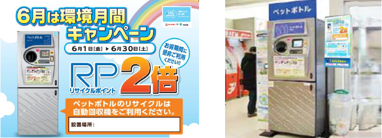 また、イトーヨーカ堂はこの期間、131店舗183台で実施しているペットボトル自動回収機のリサイクルポイント(RP)2倍キャンペーンを実施する。通常は1本=2RPだが、6月は1本=4RP付与する。 500RP貯まると50nanacoポイントに交換して買物に利用できる。