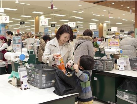 イオンでは、1991年から、レジ袋の原料である石油資源の節約やレジ袋製造時のCO2排出量を削減するために、買物袋持参運動に取り組んできた。