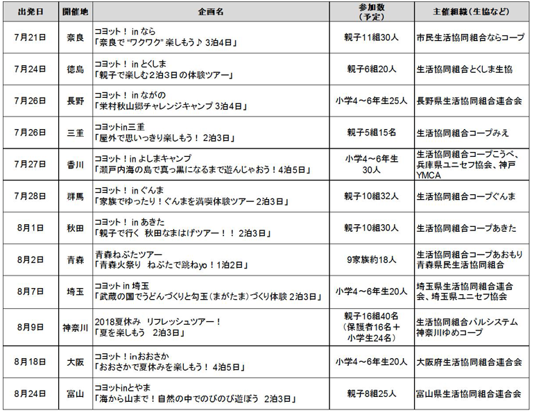 日本生活協同組合連合会(東京都渋谷区、本田英一代表理事)は、福島県生協連、福島県ユニセフ協会、福島大学災害復興研究所が主催する「福島の子ども保養プロジェクト(愛称:コヨット!)」の一環として行なわれる「夏休み特別企画」に協力する。