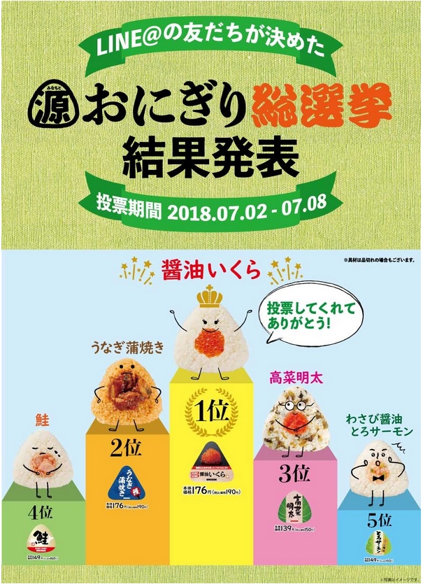 オリジン東秀news|LINE@の友だちが決めた「源おにぎり総選挙」結果発表