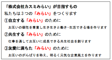 新会社のカスミみらいは、3つのみらいを掲げて設立された。