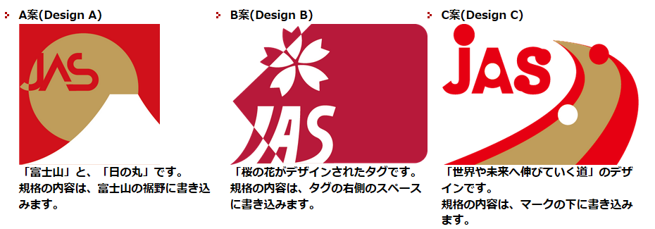 農林水産省では、生産、製造や管理方法に特色のある農林水産品に表示する新たなJASマークを定めるために、3案のデザインを発表して、一般投票によって決定する。9月4日(火)からその一般投票がスタートした。