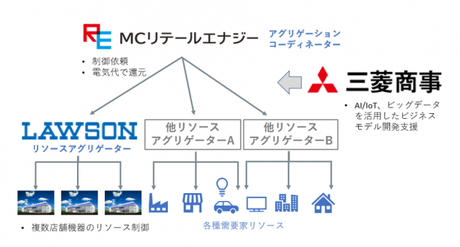ローソンは、2016年度から慶應義塾大学SFC研究所とともに、経済産業省の需要家側エネルギーリソースを活用したVPP構築実証事業に取り組んできた。このたび、小売電気事業者であるMCリテールエナジーと連携し、ローソンが「リソースアグリゲーター」として店舗機器の適時遠隔リソース制御を行う。