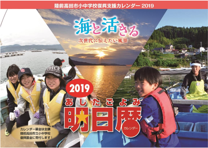 今回のカレンダーは、「海と活きる~次世代に伝えたい風景~」と題し、海と暮し、海に学び、海を思う陸前高田の大人と子どもたちの姿を紹介している。
