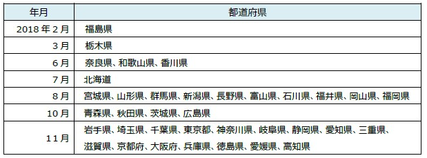 ファミリーマートは、2016年9月のユニー・ホールディングスとの経営統合以降、東京都・愛知県・大阪府での3店舗を皮切りに、サークルK・サンクスからのファミリーマートへのブランド転換を開始した。当初2年半を計画していたが、3カ月前倒しとなり、2年3カ月で約5000店舗の転換を完了する。今期に入ってからの都道府県別サークルK・サンクスの店舗営業終了時期は以下の容易になっていて、8月と11月に加速度がついて、3カ月前倒しとなった。
