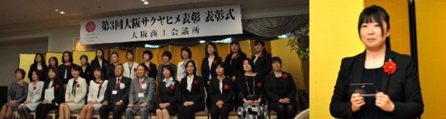 「大阪サクヤヒメ表彰」は、 “強く美しい女性”として神話に登場するサクヤヒメのイメージに基づいて、企業活動や文化的活動で活躍する女性を応援するという顕彰事業だ。