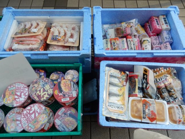 特注の移動販売車は、冷凍、チルド、常温の3温度帯の仕様で、そこには生鮮3品、惣菜・弁当、乳製品、加工食品、飲料、日用雑貨などがぎっしりと並んでいる。車2台体制で運ぶのは600アイテムに上る。この日はさらに年始用の正月花、鏡餅、玄関飾り、おせち具材などの商品を積みこんできているから650アイテムほどになるだろう。