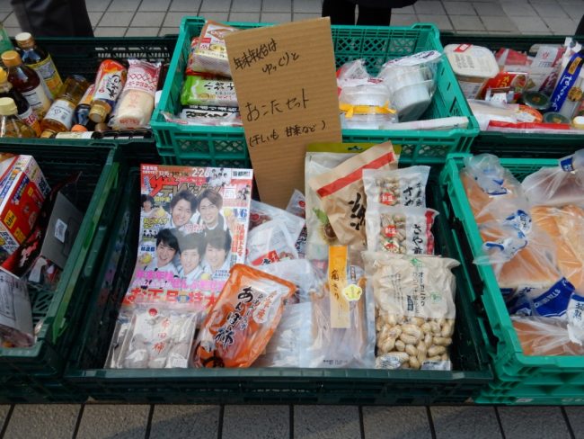 2時になると次々にお客がやってくる。そのほとんどが高齢者だ。杖をつきながらやってくる高齢者もいる。買物かごが用意されていて、お客は次々に商品を見て、選んで、かごに入れていく。足の不自由なお客には、協議会のメンバーがついて買物や会計をサポートする。