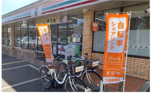 また、この「包括連携協定」の一環として、自転車シェアサイクル事業の実証実験を同日に開始した。セブン‐イレブン8店舗を自転車の貸出・返却ステーションとして提供する。