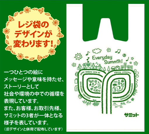 サミットnews|30年ぶりにレジ袋のデザイン一新/メッセージを絵で表現