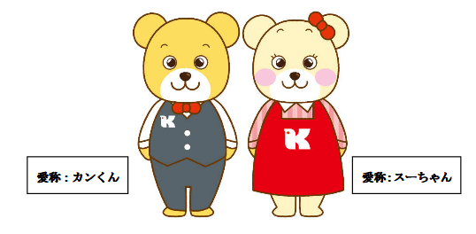 第5に、「60周年記念キャラクター」として「カンくん」と「スーちゃん」を作成。チラシでの商品紹介や、ホームページ、関西スーパーアプリ、販促物等に登場させる。