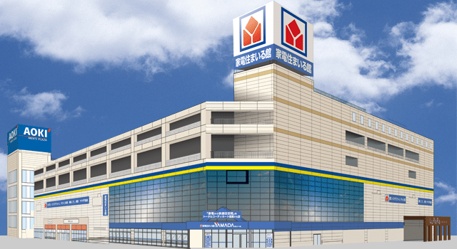 ヤマダ電機は、日本最大の家電専門小売業で、日本第4位の小売業だが、家電をコアに生活インフラとしての「住宅まるごと提案」を展開している。その取り組みの一つとして、新業態店舗「家電住まいる館」を開発し、74店舗を改装オープンしている。つまり家電と親和性の高い住宅、リフォーム、住宅設備機器、住空間の家具雑貨関係の提案に加え、各種金融商品や不動産情報の提供、カフェコーナーなどが一体となったフォーマットである。