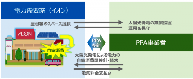 イオン(株)(千葉市美浜区、岡田元也社長)は、再生可能エネルギーの活用拡大に向けて、商業施設へのPPAモデルの導入を開始する。