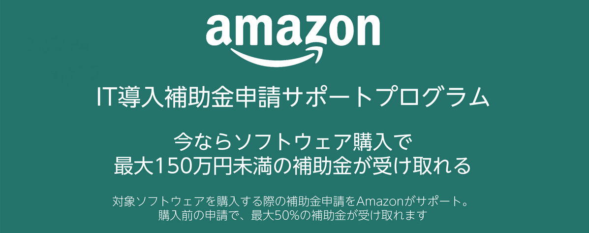 法人・個人事業主向けの購買専用サイト「Amazonビジネス」、個人向けのECサイト「Amazon.co.jp」で販売しているソフトウェアを新規購入する場合、1社当たり最大150万円未満(税抜き合計購入金額の50%)が補助金の対象となる。