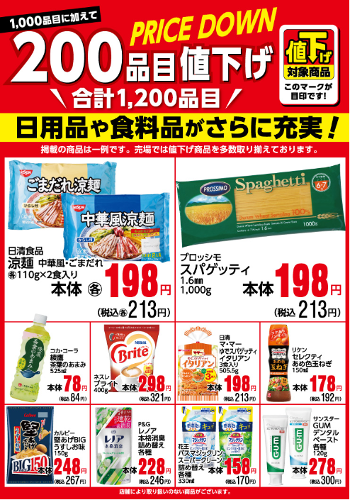 第5弾の今回の値下げで、対象品目は2018年の1000品目さらに200品目が加わり、合計1200品目となる。