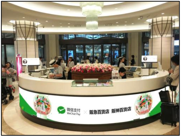 阪急阪神百貨店は、中国でSNSアプリ「ウィーチャット」を展開する騰訊控股有限公司と連携したサービスを導入してきた。2017年に中国で人気のスマートフォン決済「WeChat Pay(ウィーチャットペイ)」を導入。2018年には、店員を介さずに注文ができる「レストランQRコードオーダー」、そして2019年には、AI(人工知能)を活用した「店内案内」、海外VIP顧客クラブの会員カードの「電子会員化」などに取り組んできた。その効果もあって、阪急阪神百貨店の免税売上高310億円のうち、中国人の割合は81%を占める。
