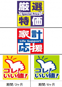企画は「厳選特価」「家計応援」「コレ!いい値!」の3種類。商品の購買頻度や季節性に応じ、また展開期間を設けて、3種類に整理した。