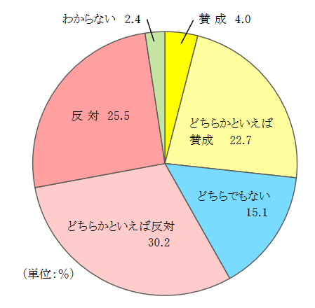 「反対」と「どちらかといえば反対」の合計が55.7%、「賛成」と「どちらかといえば賛成」の合計が26.7%となり、反対が賛成を大きく上回っている。反対の理由は「収入が増えないなかでの増税により、家計の負担が増える」といった回答が比較的多く、賛成の理由は「社会保障の財源確保のためにはやむを得ない」などの回答が多かった。