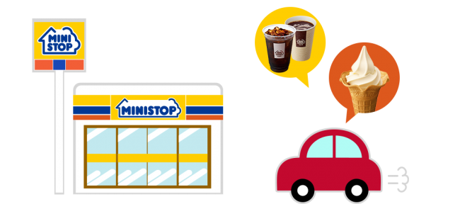 ミニストップでは、充電器を備えている関東圏25店舗を利用する会員に、特別無料クーポン券を提供する。クーポン券はソフトクリームバニラ、エックスフライドポテト、クランキーチキン(うま塩味・辛旨味)、コーヒー(ホット・アイス)の6種類。EV充電待ち時間にイートインスペースで喫食してもらい、ついで買いを狙う。また体験してもらうことで、EV充電ができるミニストップへの来店動機につなげていく。