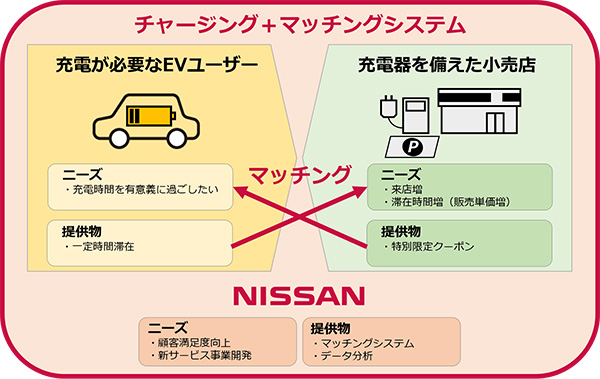 「チャージング+(プラス)」サービスは、日産自動車の「NISSAN e-シェアモビ」 の会員で、関東圏の60ステーションに配備されている EV「日産リーフ」の利用者を対象としている。