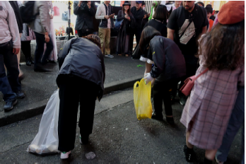 「ラクマ」は、楽天(株)が運営するフリマアプリ。再利用可能なものはクリーニング後、「ラクマ」を通じて販売し、売上金は渋谷の美化活動に寄付される。