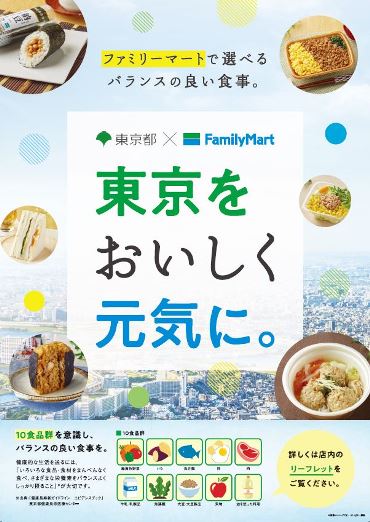 ファミリーマートは、8月に「中食を通じた健康づくりの推進に関わる協定書」を東京都と締結した。「東京をおいしく元気に。」を合言葉に展開する今回の事業では、ファミリーマートは具体的に3つのことに取り組む。