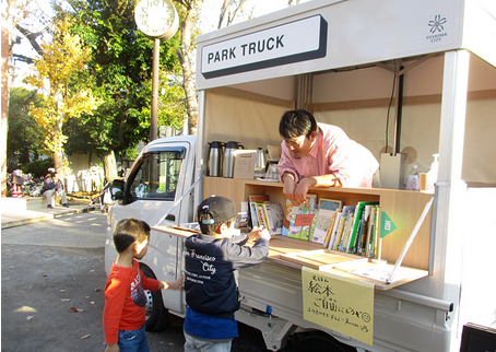 ダイハツ工業が開発したパークトラックは、モビリティの特性を活かし、コーヒーなどのドリンクやパンなどの軽食、図書館の本などを搭載し、複数の公園を訪問する予定だ。今後、地域内の事業者や大学、福祉施設との連携も視野に入れている。